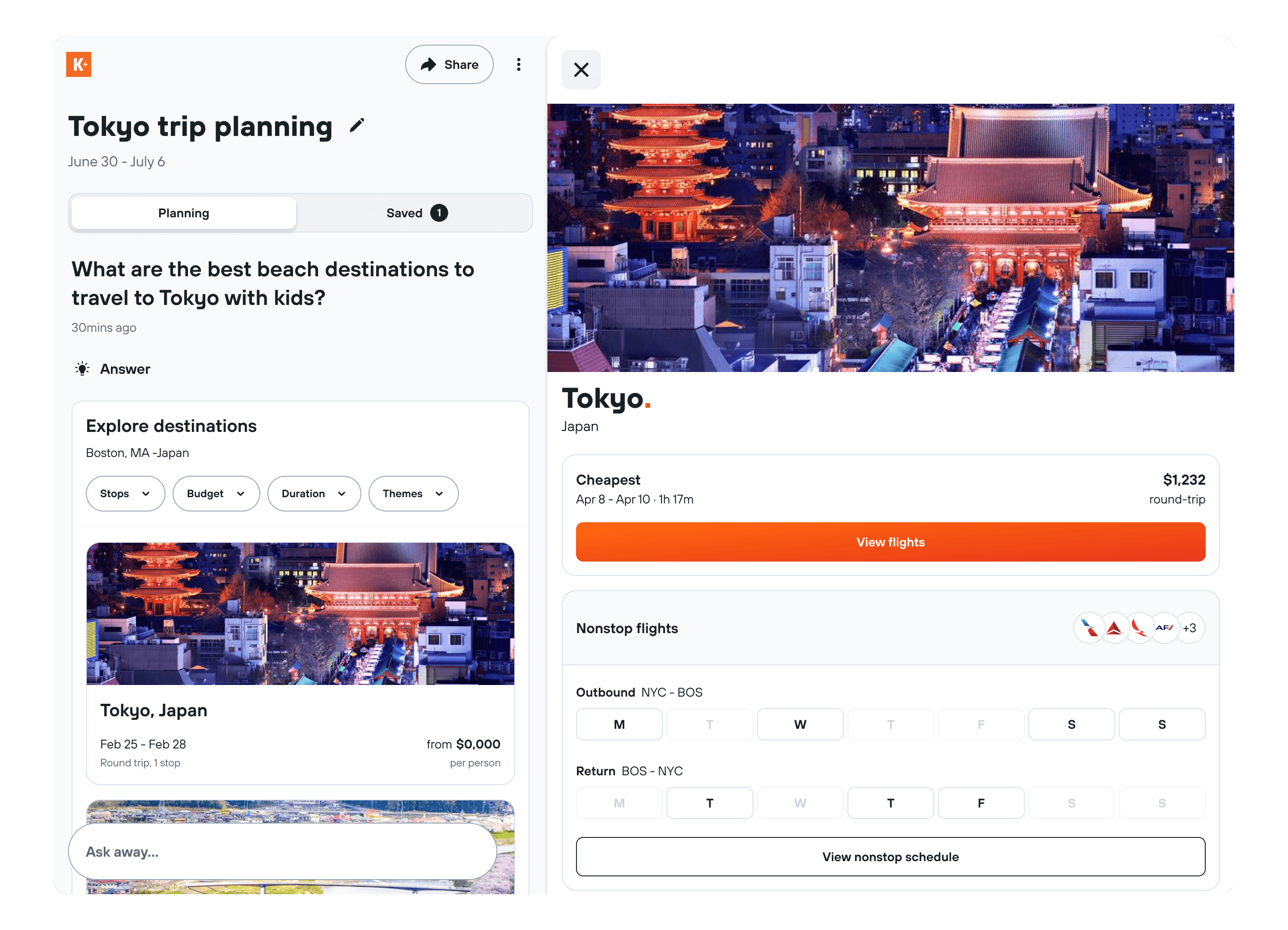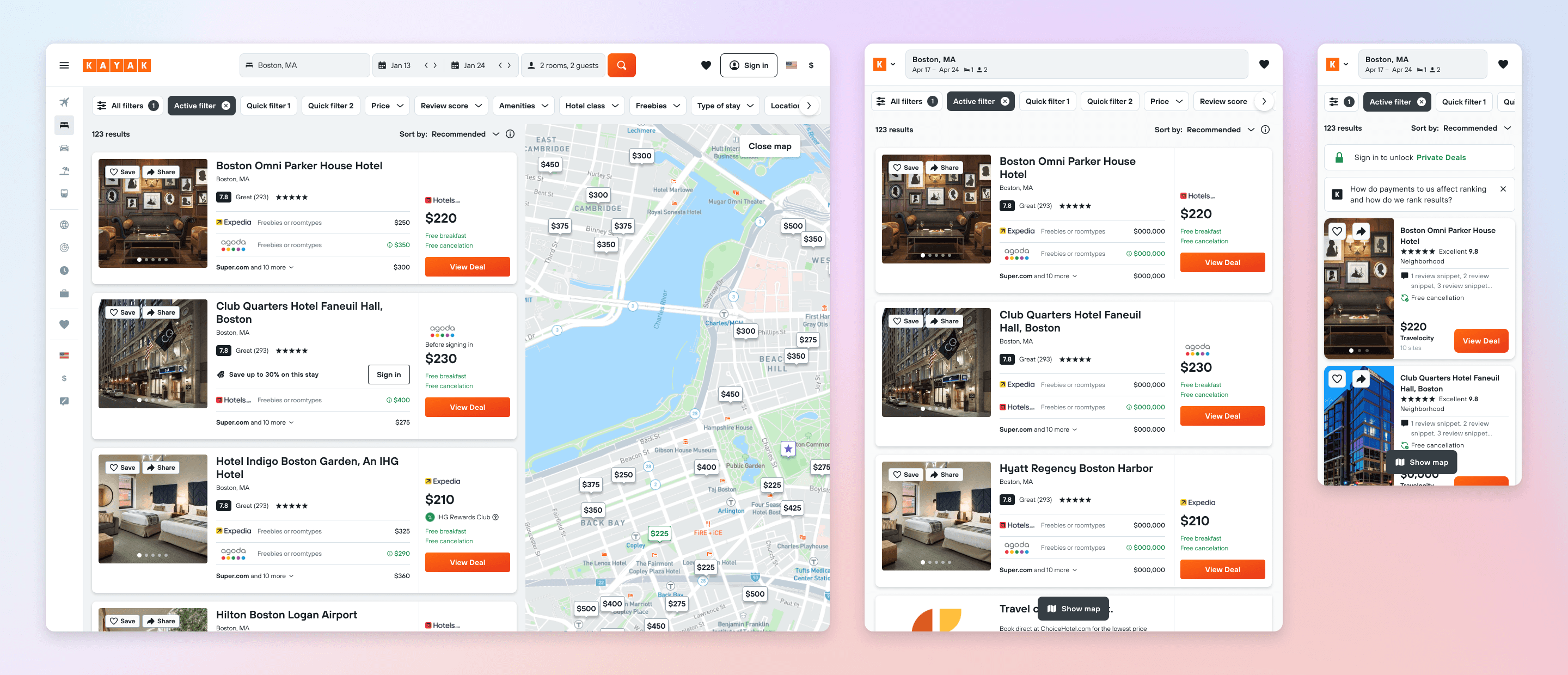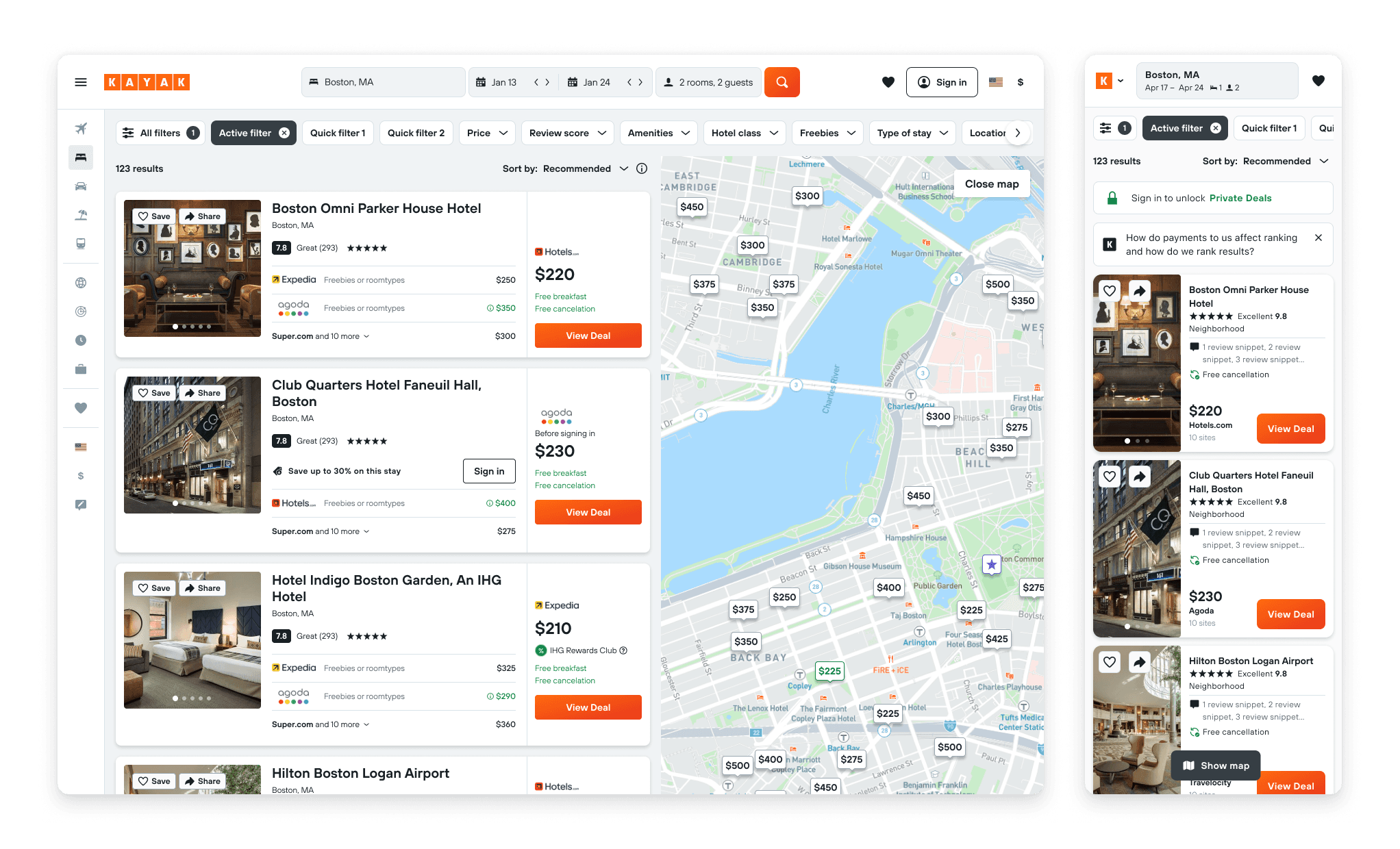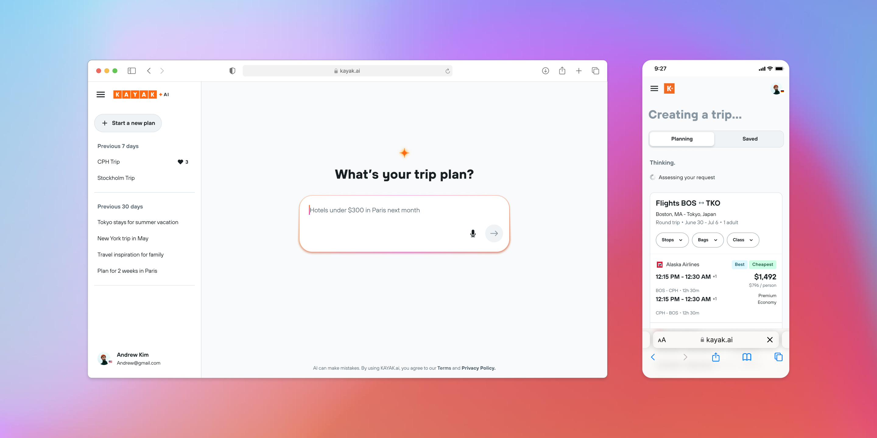 I defined the core concept, IA, visual system, and interaction patterns for KAYAK’s AI-driven search from its earliest stage.